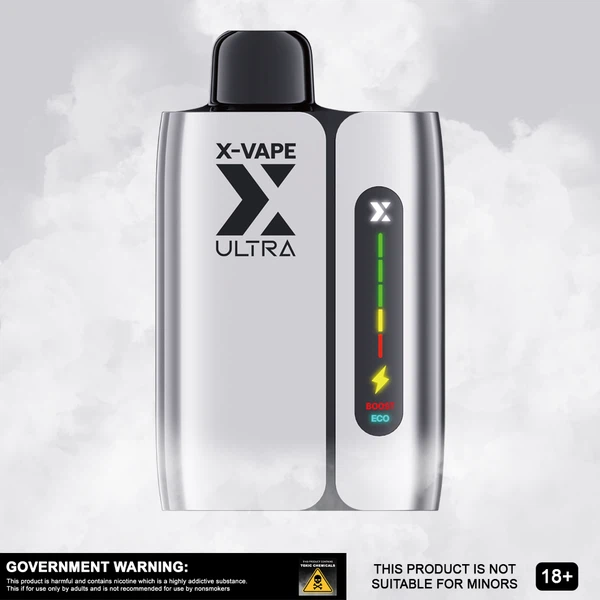 Design: Glossy, rectangular shape with "X-VAPE ULTRA" branding.